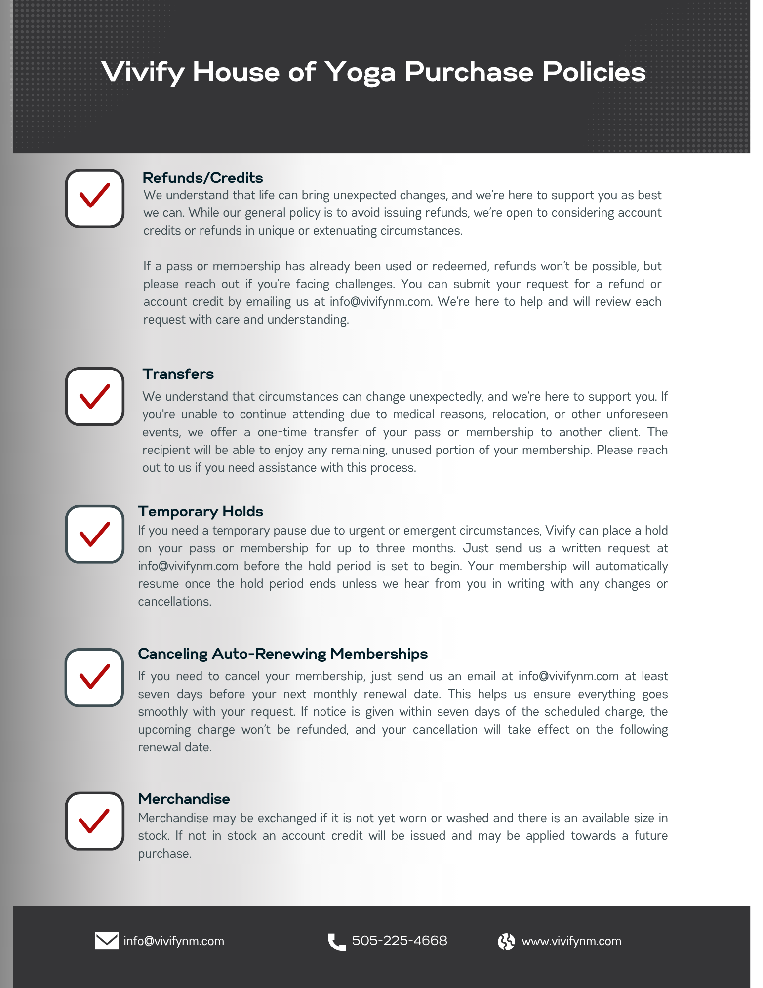 If any of the above is not followed the teachers reserve the right to ask you to leave in order to maintain the integrity of the space for those who wish to stay and practice.