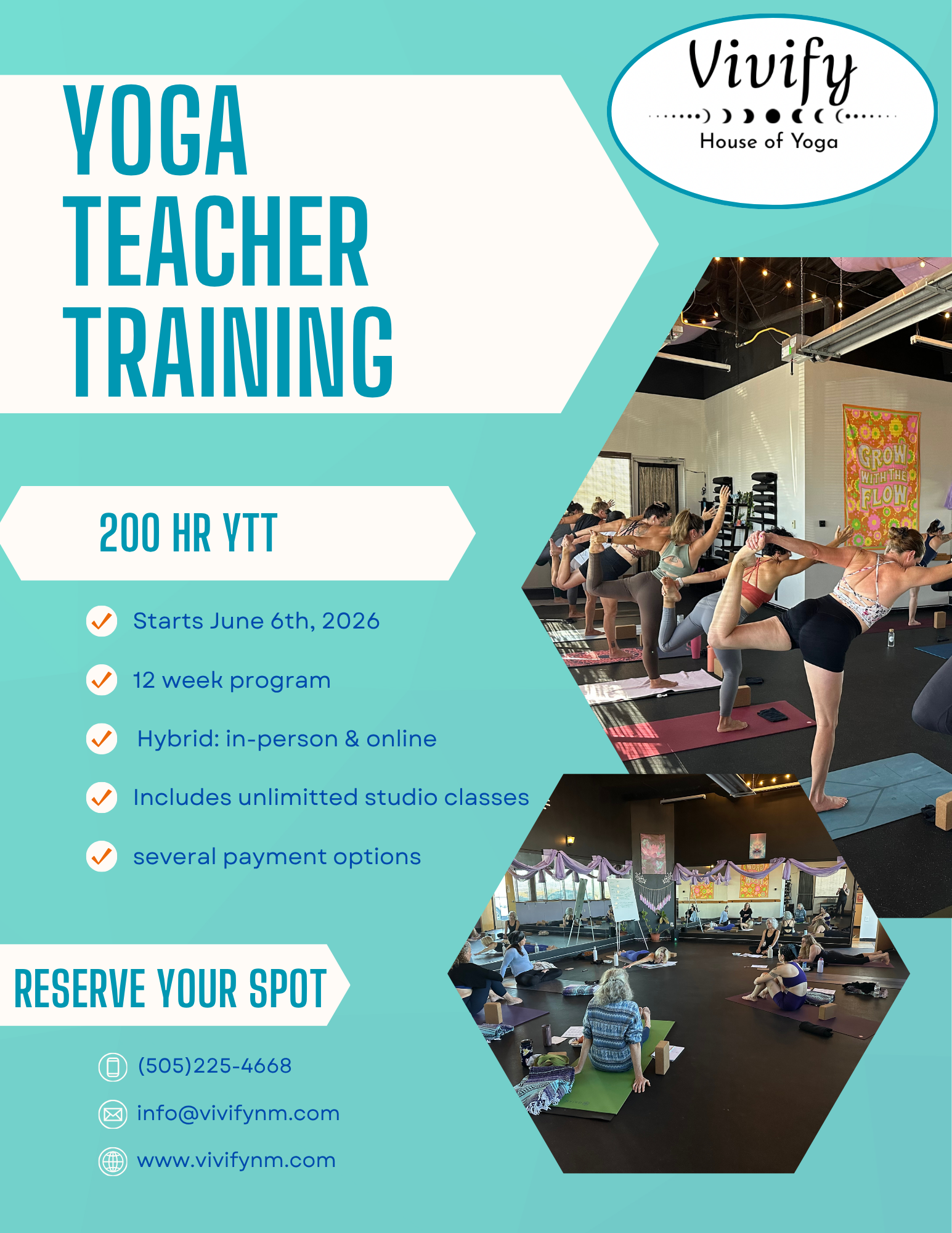 Welcome to a training designed for real life. This 12‑week hybrid 200‑hour Yoga Teacher Training blends the flexibility of virtual learning with the depth and connection of in‑person practice. Whether you’re beginning your teaching journey or seeking a transformative deepening of your personal practice, this program offers a balanced, comprehensive path rooted in the fundamentals, philosophy, and lived experience of yoga.